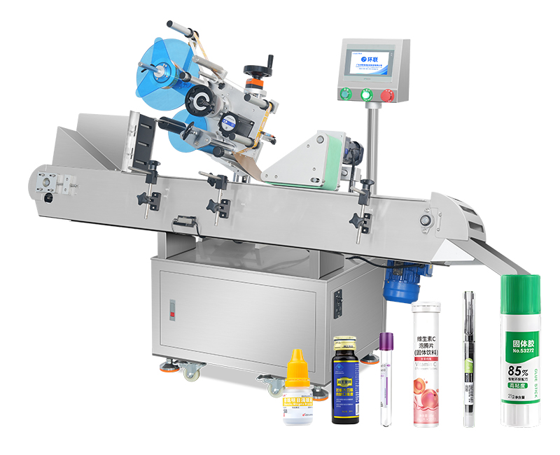 Automatic labeling machine suitable for round bottle products; supports double-sided labeling with eight-way adjustment for height, angle, and position — allowing precise label placement on both sides of bottles.